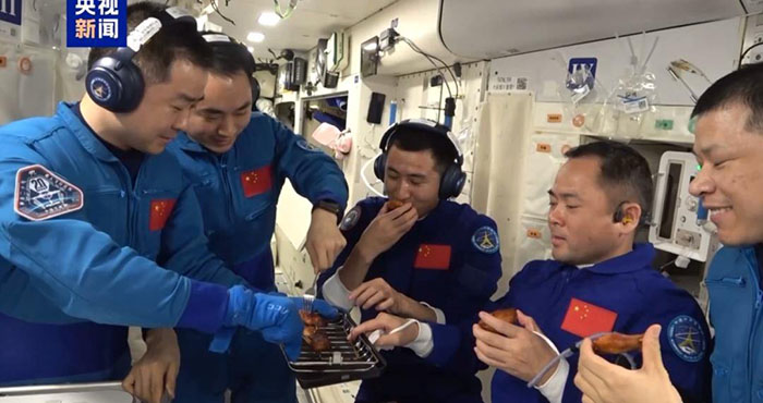 “滋滋冒油 色香味俱全!”中国空间站有烧烤吃了