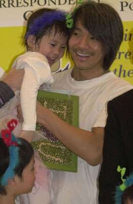 星爷昨日现身铜锣湾保良局作儿童亲善访问,他一到场就获得贵宾式招待,还得到大班天真无邪的小童到门外献花欢迎。星爷获热情款待非常高兴,起初表现谦谦有礼,其后他获安排到课室观看小童学习情况,之后星爷静心听完大班小童朗读一段英文后,他又充当老师,带领小童重温,不过他突然带领小童诵读其中的英文单词,教小童不懂反应,只管重复背诵整个段落的英文,星爷见自己整蛊成功,即哈哈大笑。接着大队转移到大礼堂继续活动,星爷又挑战小孩斗快穿回鞋子离场,结果再一次被他赢了。