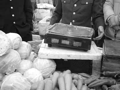 目前,我市各大菜场都设有公平秤,工商人员建议市民买菜后尽量用公平秤检验一下,一旦发现违规秤具,及时向有关部门举报。