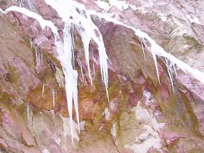 图为岩壁上的冰凌。(吕芳摄)