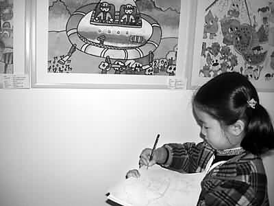 由康大公司为获奖者在美术馆办的这个画展,也给爱好书画的小朋友提供了走进美术馆、向同龄小朋友学习的机会。在展出期间,笔者碰到了正在临摹获奖画作的8岁小朋友严佳祺。她说学画画已有两年时间。画画她最喜欢了。一到周末,她会一个上午画个不停。受她影响,她的表妹也喜欢上了画画。她的妈妈证实了孩子的话。她说,两个小孩在家里涂涂画画,往往一画就是三四个小时。做父母的,真是看在眼里,喜在心里。