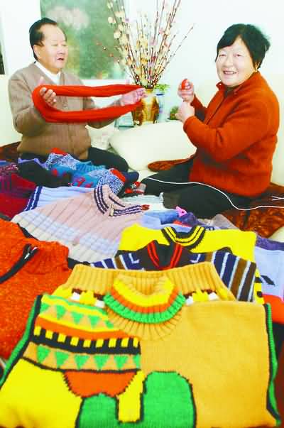 韩阿婆家住东湖花园。昨天,当我们来到她家时,韩阿婆仍然在赶织毛衣。“我给自己定的任务是40件,哪知天冷得这么快,还差几件没织。现在抓紧赶一赶,哪怕多织一件,那也能多让一个孩子穿上。”
