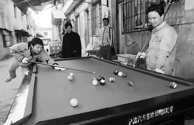大冷天,张家附近的台球摊生意也不错。徐佳伟/摄