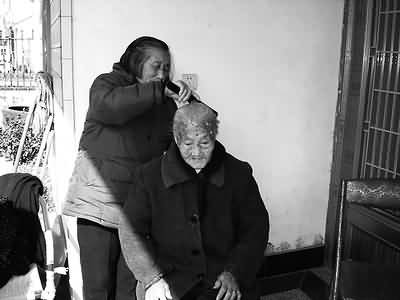 干巧珍为婆婆梳理白发。见习记者宋健益图