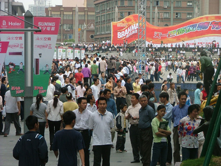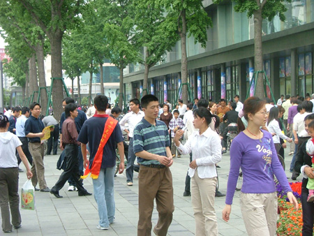 中国宁波网5月1日消息(记者丁伟)五一长假的甬城街头处处洋溢着欢乐的节日气氛。人群、促销、彩球、欢声笑语构成了一组独特的主题乐章——欢度五一国际劳动节。