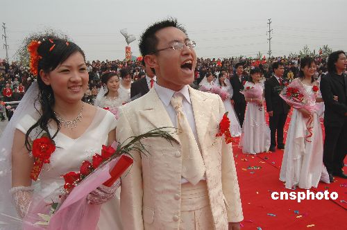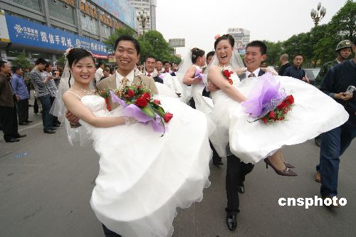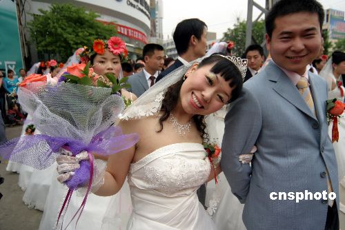 据上海市民政部门透露,今年“五一黄金周”将有三万多对新人举行婚礼,平均每天有近五千对新人办酒席。“五一结婚潮”让上海各大宾馆、酒店的喜宴几乎“满棚”。作者:汤彦俊