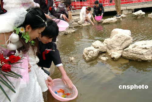 中国宁波网讯 黄金周的到来也迎来了一轮新的结婚高潮,全国各地举行着各式各样的婚礼,一对对新人喜结良缘。