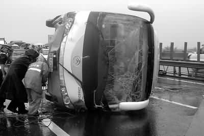 中国宁波网讯(记者周琼通讯员夏世敏吴建懂)昨天上午8时45分许,一辆从宁波开往宁海的浙BE2906大客车在同三高速公路奉化段侧翻,车上多名乘客受伤。