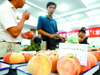 中国宁波网讯 昨日在奉化举行的宁波市十大名果(水蜜桃)评比中,“锦屏山”牌玉露水蜜桃获评我市首个名果。今后两年,我市还将评出9个名果品牌。 记者王增芳摄