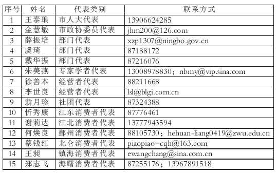 中国宁波网讯 (记者张燕)最近,市城市公共交通协会向市物价局提出了《关于要求调整城市公共客运票价的请示》。经研究,市物价局决定于12月上旬召开宁波市区公交票制价格改革听证会。昨日,市物价局公布此次听证会正式代表名单和联系方法,市民可在12月4日至6日期间与听证会代表联系,表达对城市公交票制价格改革的意见和看法,如果一时无法与他们联系上,也可直接与市物价局联系,由市物价局工作人员将意见和建议予以转达。