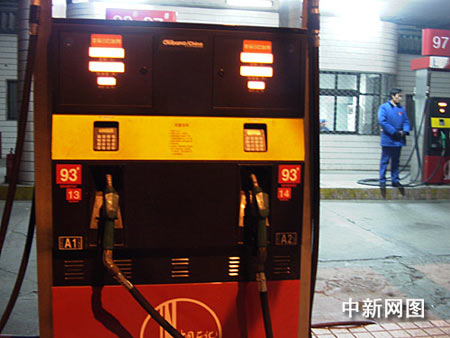 在1月14日零时各加油站完成调价后,一位北京出租车司机来到加油站加油。中新网余瑞冬摄