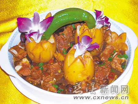 韩师傅的 “香排炖天鹅蛋”有特色,其他6位专业厨师也不甘示弱,特色菜赢得了评委们的肯定。来自观城宾馆的楼海听师傅烧了道 “盐烧土豆”,虽然外形土得 “掉渣”,但色香味俱全的这道菜,得到了杭州湾大酒店厨师长童张波的首肯: “这道菜是真正的民间特色菜,而且是素菜,很不错。”慈溪职高的胡柏先老师认为,第二场比赛在特色菜方面比第一场要来得多,希望接下去的比赛中涌现出更多具有慈溪民间特色的菜肴。