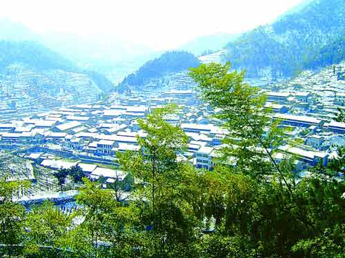 图1:虽然山下积雪消融,但是在四明山镇还是一片白雪皑皑。