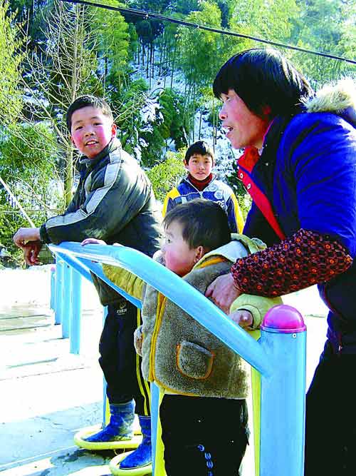 图3:人们开始走出家门,快乐地在农民公园的健身器材上玩耍,严重冰雪灾害天气对他们的影响将渐渐消除。