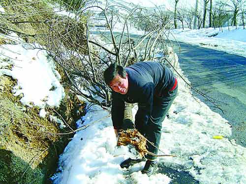 2月14日一早,等不到通往四明山公路上的冰雪完全融化,我们的采访车在盘山公路上行驶两个多小时,在离镇不远一公里的盘山公路上,找到了正带领干群破冰开路的镇党委书记何国强。
