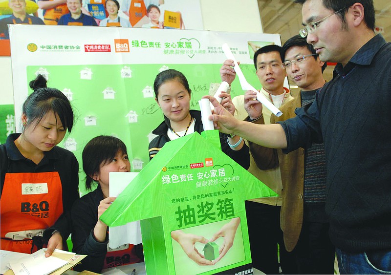 图为在由本报及市消保委、宁波市室内装饰质量监督检验站、百安居共同开展的“绿色责任·安心家居”宁波地区调查活动过程中,市民踊跃投票的场景。王勇摄