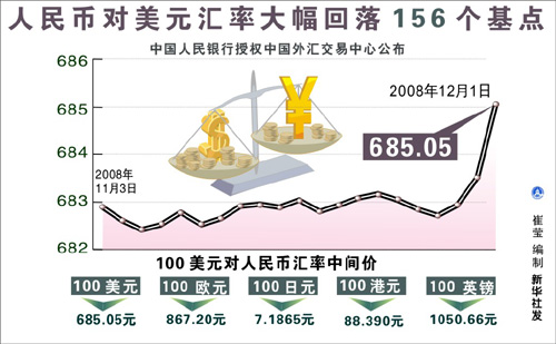 图表:人民币对美元汇率大幅回落156个基点 新华社发