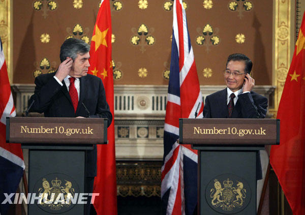 在记者招待会前,温家宝总理前往英国外交部出席布朗首相举行的欢迎仪式,随后两国领导人共同出席了金融、学术界人士早餐会和中英工商峰会,并进行了正式会谈和出席双方合作协议的签署仪式。