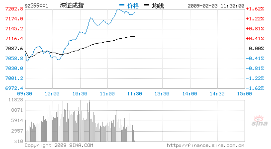 北京首证:两市周二顺势略微高开后均呈明显的震荡上攻态势,短期整理平台已被上破,涨跌家数显示多方目前仍占有较大优势,蓝筹特别是金融、有色金属表现得尤为突出。早市成交额较昨日同期激增约五成,既表明市场参与热情大大提高,也说明多空分歧有所加剧,而上摸高点则接近了上周CDP系统显示的技术高点即2050点,短线继续上行的空间可能就会因此受限,换言之,午后大盘很可能转入强势整固局面。