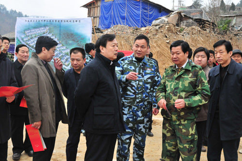 随后,夏宝龙一行又视察了乔庄镇回龙村下坪社农房重建施工现场。“下坪社农房重建项目是浙江宁波援建的补助类项目,由宁波援建补助200万元进行下坪社的道路、绿化、排水等基础设施配套建设,同时为当地政府提供技术支持……”,在听完了对下坪社的详细介绍后,夏宝龙对在场的援建工作人员说:“一定要抓紧时间干,把这个项目建好,建出样板来,让百姓住上更好的房子,让各乡镇都来参观。”在视察中,我市援建的这两个农房重建示范点得到了夏宝龙副书记的高度肯定。 |