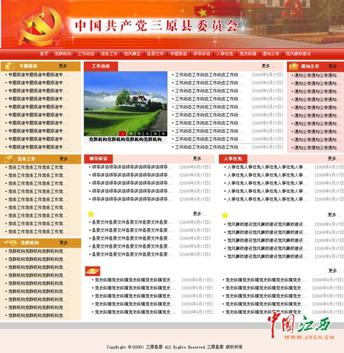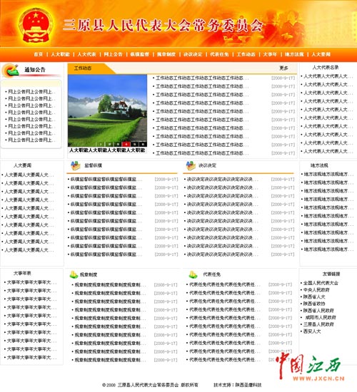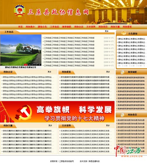 中国江西新闻网3月26日南昌讯(记者 沈德森 叶安勇报道)自江西某市外侨办网站页面只为一张图片被网友曝光“史上最简洁政府网站”后,3月26日,又有网友发帖称发现更为雷人网站:在长达半年的时间中,陕西三原县三大机关网站形同虚设,更新内容全部为一个栏目名,严重影响当地形象。
