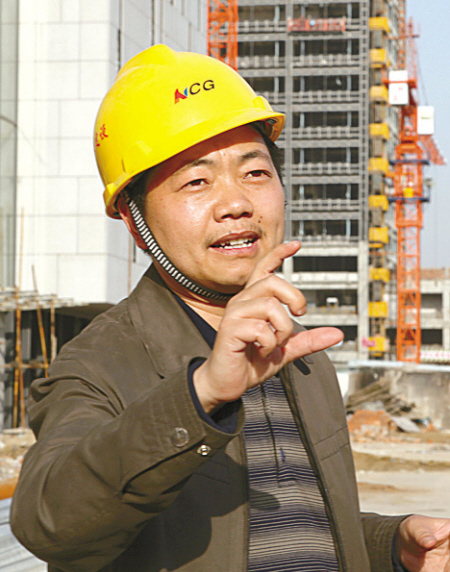 通透的玻璃幕墙,乳白色的花岗石,别致的“G”字形形状。在东部新城中心商务区,一座气势不凡的商务楼拔地而起,为市政府“中提升”战略核心地块画上了浓重的一笔。负责这座建筑施工的就是马海平。