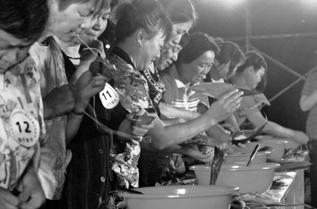 作为东道主,文教街道的7个社区经过近半个月的层层选拔,派出了一批实力派选手参加“包粽快手”比赛。余姚的凤山街道凤山社区、江东的东胜街道曙光社区与大河社区、海曙的西门街道永丰社区与柳庄社区、南门街道尹江岸社区、江北的洪塘街道姚江社区也分别派出了身怀绝技的选手。最后,来自余姚凤山街道凤山社区的叶慧芬、杨月君组合在限定时间内包出的粽子最多,一举夺冠,叶慧芬在去年的比赛中曾夺得个人冠军,看来她是盯住擂主的位置不放了。