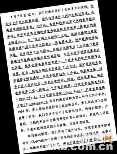 据《中国青年报》报道称,在该团赴南非等国考察访问之后,出具了一份关于考察结果的报告。但网友发现,该报告充塞着大篇幅的地理常识等内容。