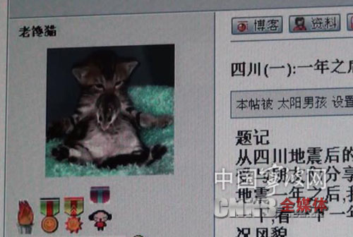 中国宁波网7月8日讯(记者陈锦源)曾远赴贵州为与自己非亲非故的白血病患者“苗苗”寻找生父的宁波网络红人“老馋猫”张伟,最近靠着自己出售软件的收入,又干了一件网友们想干的事情:踏上探访汶川灾区的路。前天他在论坛发了帖子,讲述了他看到的汶川深处。