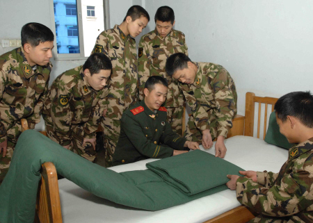 昨天下午,武警宁波支队新训大队首批近200名新兵有的学迈步操练,有的学叠军被,有的趁空隙时间与班长掰起了手腕……这批新兵分别来自浙江、江苏和江西等省。他们将在此进行为期3个月的封闭式训练,然后奔赴各自岗位,为宁波建设保驾护航。
