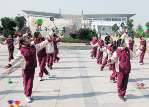 抖空竹是首批国家级非物质文化遗产,鄞州区高桥镇中心小学把这一独有的民族传统体育活动引入到该校的“快乐课间”,丰富了学生锻炼的内容,提高了锻炼热情,达到了“快乐体育”的目的。