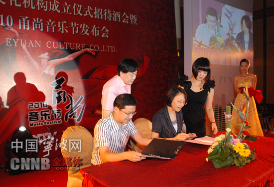 昨晚还举行了宁波爱珂艺源文化机构成立仪式。市政府副秘书长陈国强、市文化广电新闻出版局局长陈佳强以及市音乐家协会主席、市旅游局副局长陈民宪等应邀出席了此次活动。发布会宣布“2010甬尚音乐节”将作为宁波市的年度大型音乐主题活动,今后将每年举办一届。