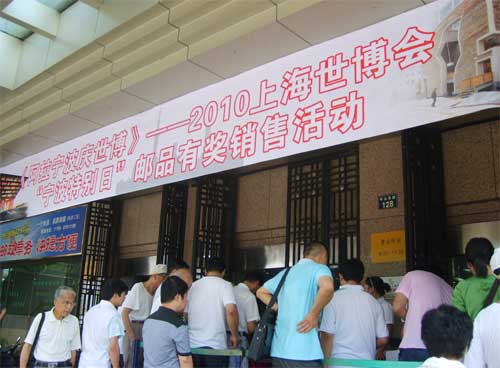 8月1日是上海世博会“宁波特别日”,为纪念这一富有意义的盛事,市邮政局发行《阿拉宁波庆世博——上海世博会“宁波特别日”》纪念封一枚。图为8月1日上午广大市民在邮政鼓楼支局前争相购买纪念封。