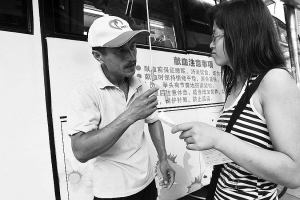 每天下午,钱国钿都会来到二百门口的献血车旁,进行志愿服务。 东南商报记者 刘波 实习生 孙宝琦 郑再非 摄