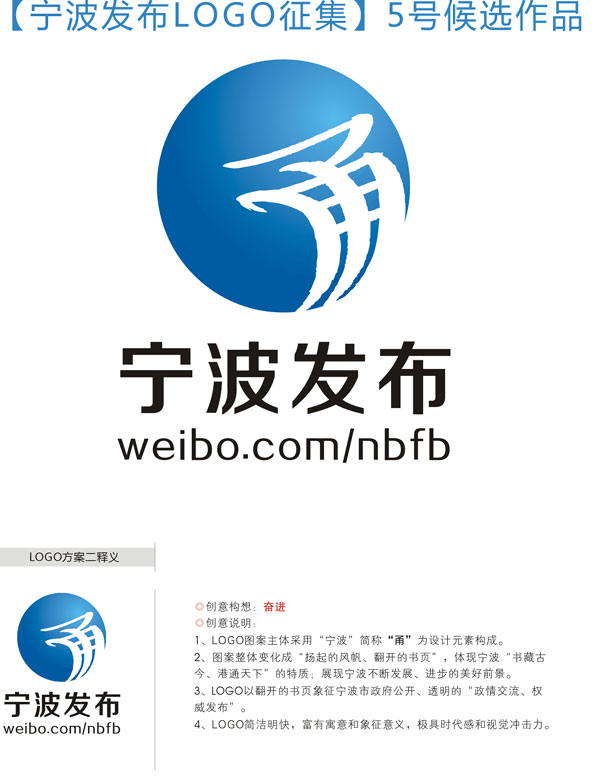 “宁波发布(http://weibo.com/nbfb)”是宁波市政府新闻办公室官方微博,LOGO征集活动得到了广大粉丝的关注。经评选,下列人员或单位的作品入选“宁波发布”政务微博LOGO前50。其中,王震声、陈洁荣、秦磊、陈新泉、木子设计、王前分别有两个作品入选,周文树、吴彤、李丁锋、段振国、向宇、陈壮、张勇军、杨军、东岳、徐峰、孔斌、刘刚、方军、章云途、徐永鹏、王猛、汪敏、陈武强、王文东、苹果粉丝、王琴、张丽梅、LXH7572854、yiwentianxia18、李冬冬、xuqifeng、黄玉峰、天宁创意工作室、yejianbo、李久良、陈新华、杨飞龙、雍自高、李刚、熊仁海、肖宗亮、叶卉、Wang.rf各入选一个作品。我们将陆续发出一份纪念品,请注意查收。