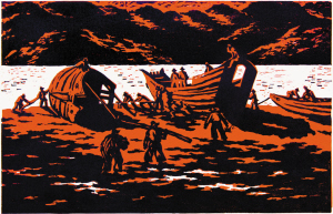 蓝湖,原名林祥生,1941年出生,浙江象山石浦人。浙江美协会员。从事版画创作,以石浦渔港题材为主,用版画记载了石浦渔港50年的变迁。