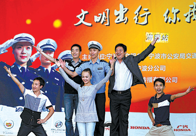 昨天下午,由市文明办、市交通警察局联合主办的2012年文明交通百场文艺巡演在海曙区南苑小学举行,通过小品、情景剧、快板、舞蹈等表演形式,在寓教于乐中让小学生提高交通安全意识。