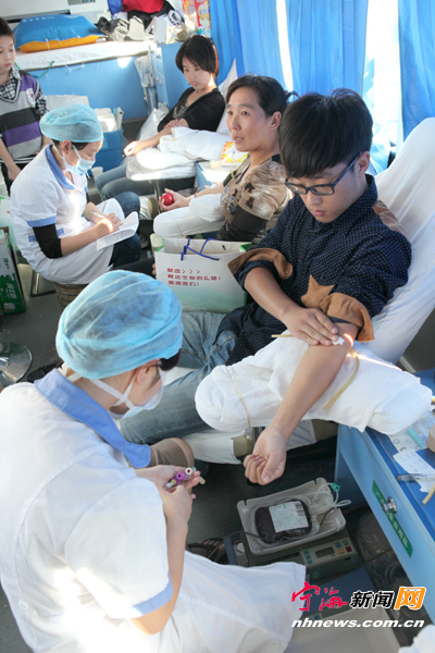 宁海新闻网讯 长假期间,市民欢度假期之余献血热情不减,纷纷以无偿献血的方式向祖国生日献礼,以表达对祖国的热爱。据统计,假日里,献血车在城区中山路街头采血4天,就有130人完成献血,共献血38900毫升。图为国庆节当日,来自一市镇的叶姓母子专程前来献血,两人献血500毫升。 (记者惠广亮摄)