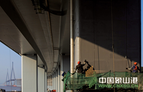 比如大桥桥墩在潮涨潮落时会形成一个浪溅区,大桥建设者进行了该区域混凝土表面防腐技术研究,并被列为浙江省科技计划,目前初步形成了具有我国自主知识产权的绿色高延展性钢筋混凝土涂料技术;再比如声屏障方面,大桥建设者进行了高速公路声屏障实用技术研究,并被列入宁波市交通科技计划,研究成果应用在大桥上可以更明显地降低噪声。