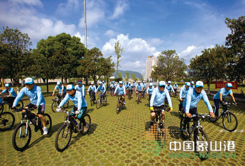 来自各行各业的150位青年志愿者成员统一着装,骑着自行车从人民广场出发前往松兰山景区,以实际行动向周边群众宣传“低碳环保行”理念。到达目的地后,志愿者们又以“一袋垃圾换取一本书籍”的方式,把松兰山景区各角落拾捡得干干净净。(记者郑勤通讯员方红红)