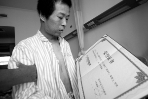 阿里公益颁发给徐海荣的“天天正能量”特等奖证书。记者徐文杰摄