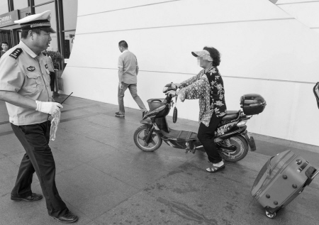 不过禁令未能引起少数骑电瓶车上高架桥的旅客的重视。“火车站的进站口就在上面,绕道走,就远了。”几个被执勤协警拦下的旅客说,他们也知道骑电动车上高架桥有危险,也看到了交通指示牌,但就想图个便利。