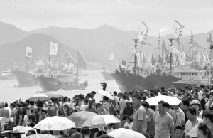 昨天中午,象山石浦港千舟竞发驶向大海。记者王增芳摄
