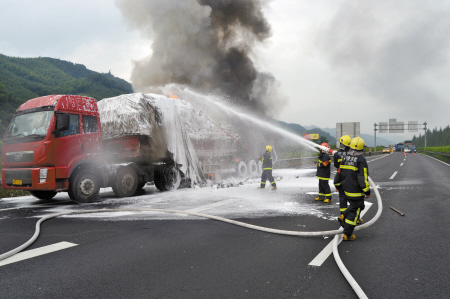 昨天清晨6点50分许,在甬金高速奉化溪口路段,一辆前往宁波的大货车爆胎起火,滚滚浓烟腾起10多米高。车上装着15吨棉絮,价值30多万元。消防部门到场后,历时3小时才将明火完全扑灭。