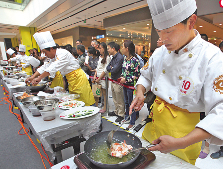 昨天,首届市民文化艺术节系列活动之一的“厨王争霸”宁波菜民间烹饪高手大赛在本市来福士广场举行决赛。10位晋级决赛的烹饪高手,经过规定菜、自选菜的烧煮以及评委评选等环节后,最终6位参赛者获得金、银、铜奖。