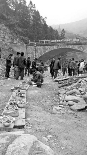 在宁波桥下,乡亲们摆起长桌宴,像过年一样。