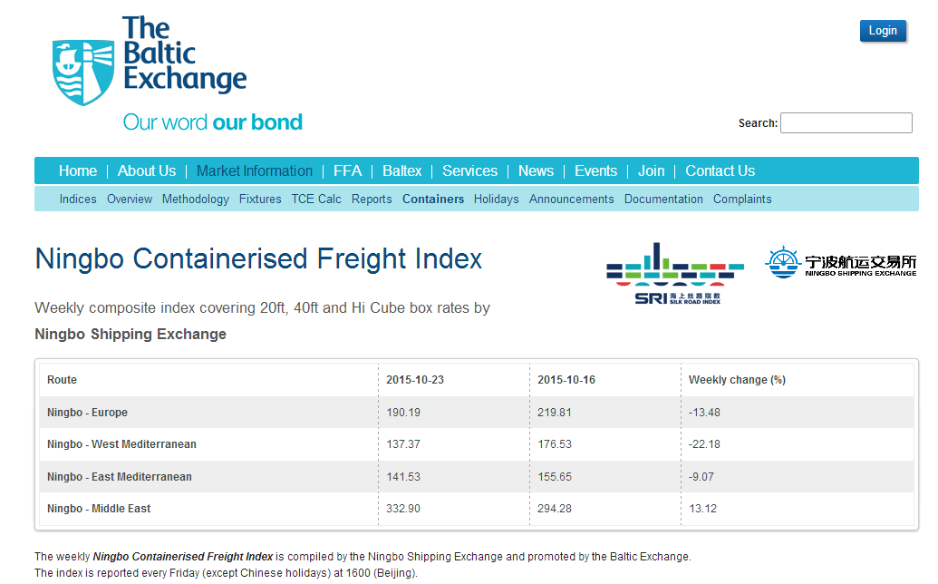 北京时间今天下午16:00,英国伦敦时间9点钟(夏令时),总部位于伦敦的波罗的海交易所官网正式发布了宁波航运交易所拟定的4条代表性航线的宁波“海上丝绸之路出口集装箱运价指数”(NCFI)。这是中国航运指数首次走出国门,在最具影响力的波罗的海交易所正式发布。