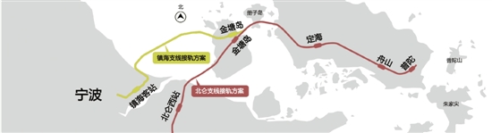 这个方案新建双线长约35公里,其中双线隧道3座约3.6公里,双线桥梁6座约27公里,新建金塘岛站和镇海客站。预算工程投资90亿元。