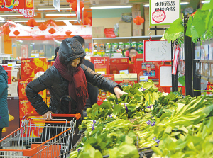 昨天傍晚5点,家住江东划船社区的沈阿姨来到三江超市华严店,围着生鲜区转了几圈,最后挑选了几扎新鲜的青菜和芹菜,回家做饭了。