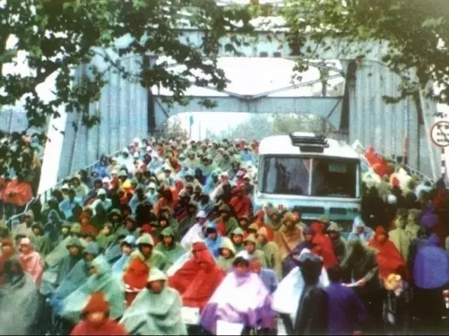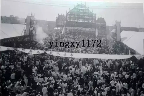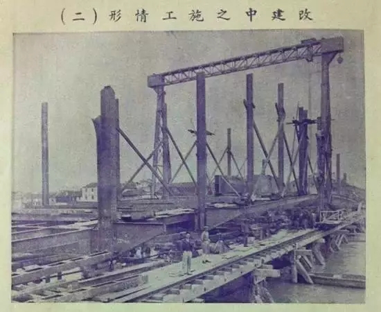 后来,经过民间募集,筹到了70多万银元建造灵桥。这是灵桥建设中的情景: